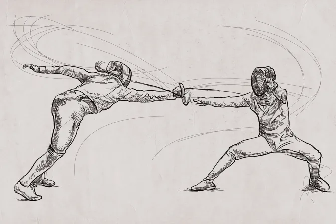 Kobiety ćwiczące szermierkę walka.