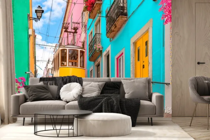 Fototapeta: Kolorowa lizbona żółty tramwaj