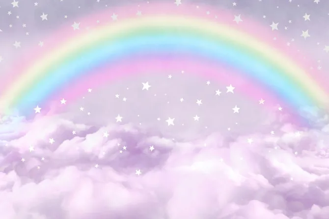 abstrakcja, kolorowa, niebo, gwiazdki, gwiazdy, tęcza, chmury