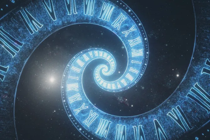 Kosmiczna przestrzeń w spirali rzymskich zegarów.