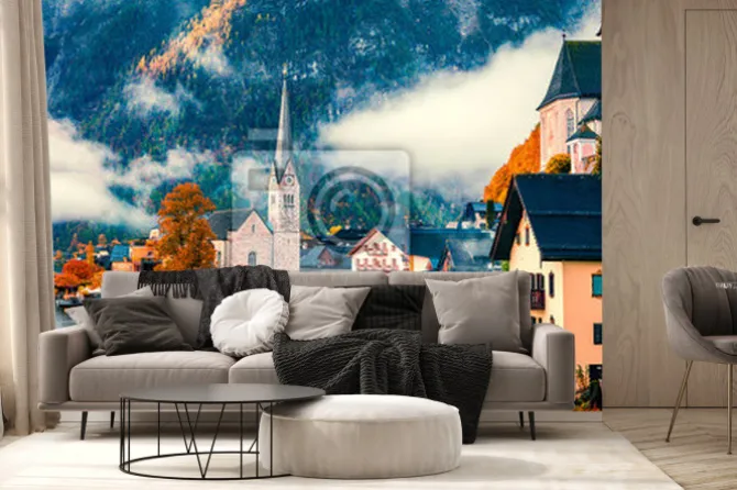 Fototapeta: Krajobraz z widokiem na wioskę hallstatt