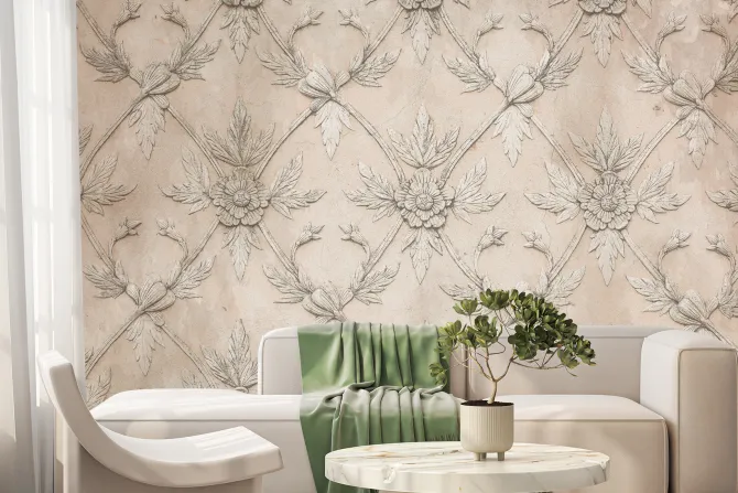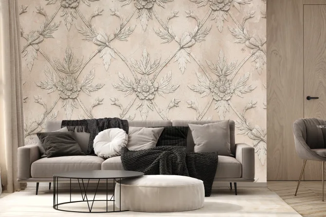 Fototapeta: Kwiatowa sztukateria na betonowym tle