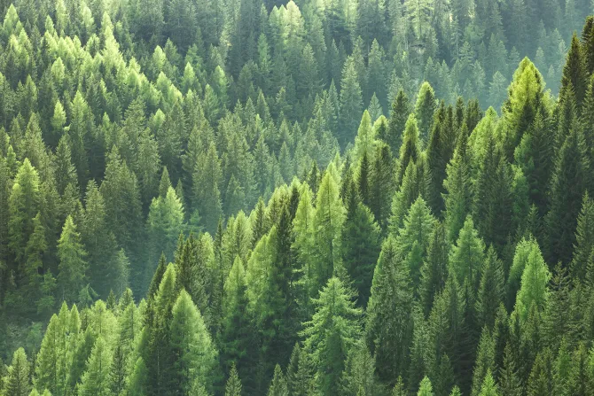 Las iglasty krajobraz z lotu ptaka.