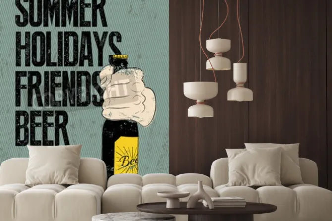 Fototapeta: Lato, wakacje, przyjaciele, piwo. typograficzny plakat retro
