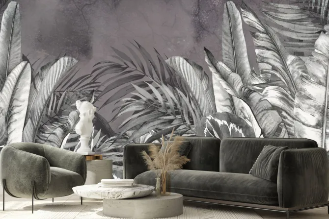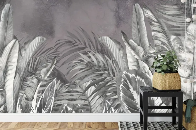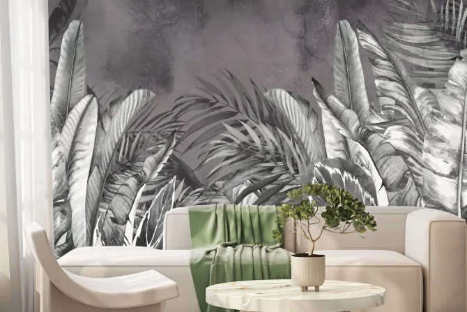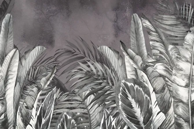 Liście tropikalne w szarościach.