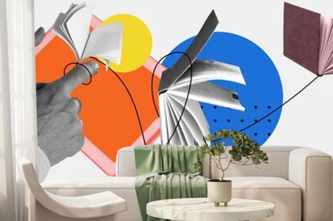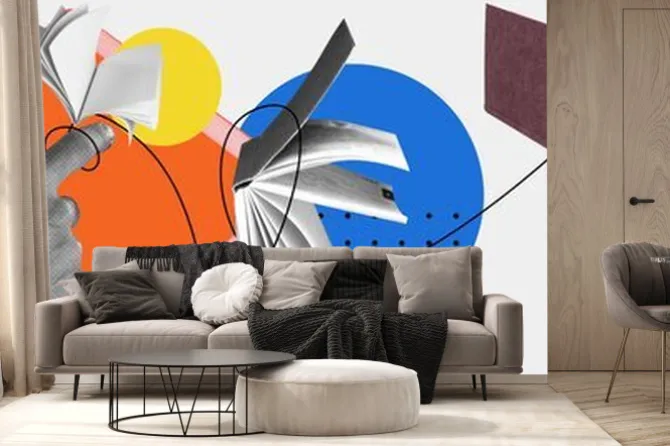 grafika, biblioteka, szkoła, kolaż, sztuka
