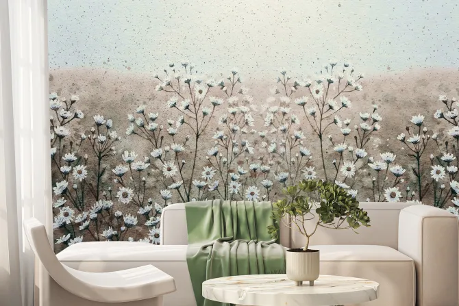 Fototapeta: Malowana łąka z kwiatami stokrotka