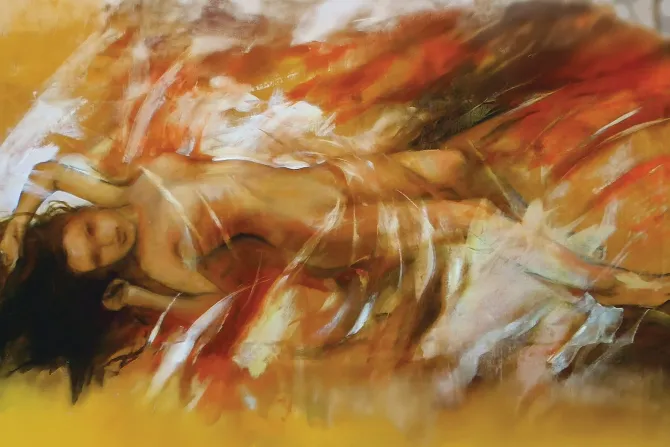 Fototapeta: Malowana subtelna sylwetka kobiety