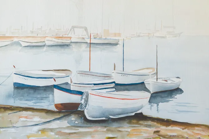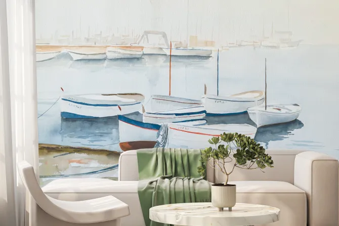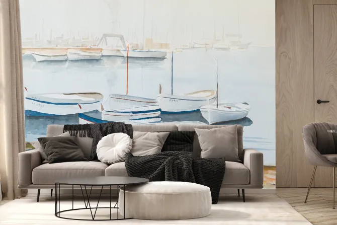 Fototapeta: Malowany wzór z łódkami na brzegu