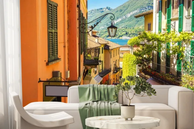 europa, kamienica, wieś, Alpy, Brzeg, ulica, jezioro, miasta, Włochy