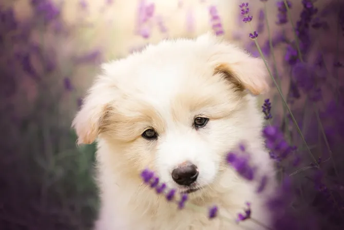 Zwierzęta, fioletowy, lawenda, pieski, piesek, psy
