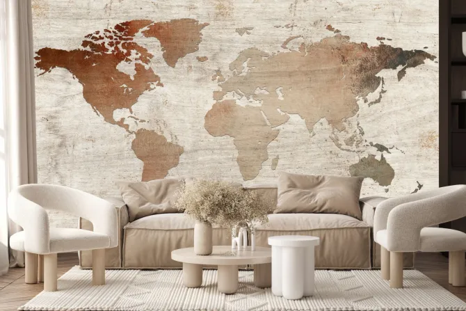 Fototapeta: Mapa świata na drewnianym tle rustykalny design