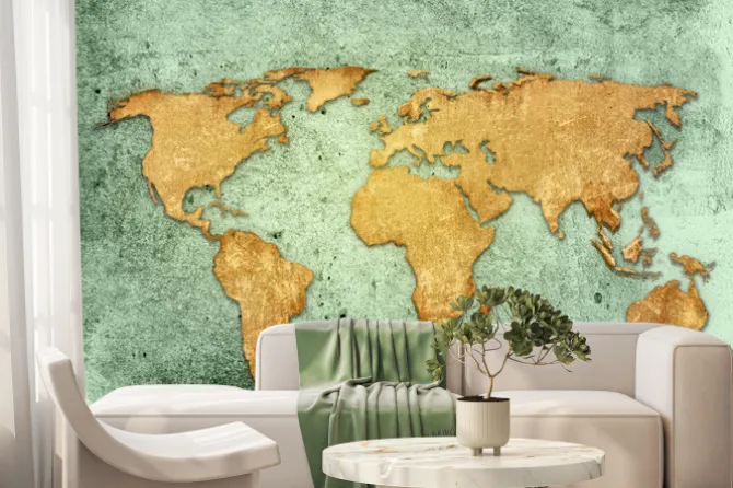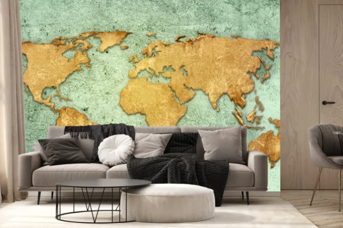 Fototapeta: Mapa świata na zielonej betonowej ścianie