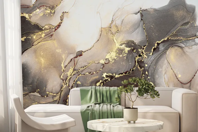 Fototapeta: Marmurowy deseń w stylu akwareli ze złotem