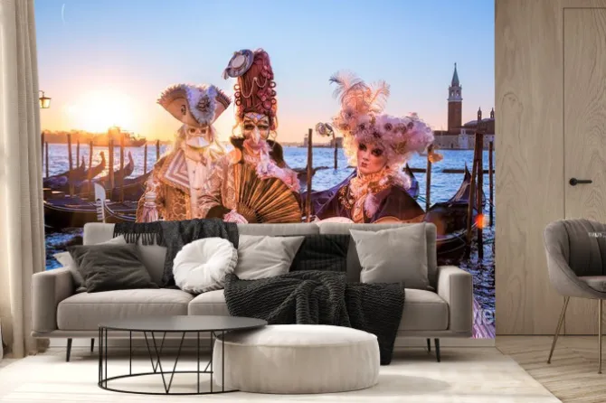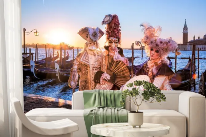 Fototapeta: Maski karnawałowe przed wschodem słońca w wenecji, włochy