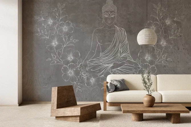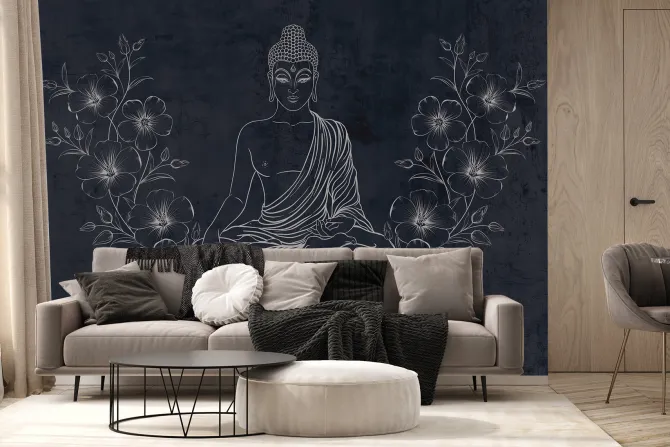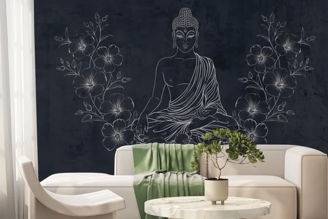 Fototapeta: Medytujący budda wśród kwiatów na teksturowym tle