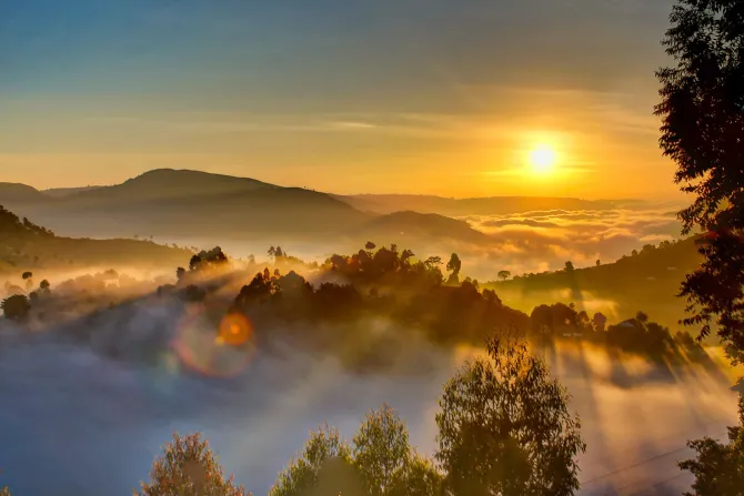 pustynia, wschód słońca, na zewnątrz, natura, góry, krajobrazy, Afryka, mgła, las