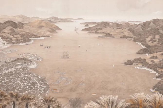 statek piracki, statki, rośliny, roślinność, góry, morze, stare miasto, miasta