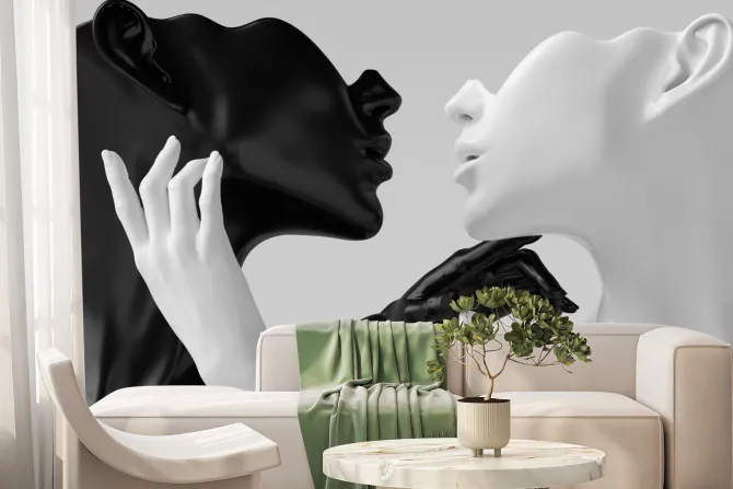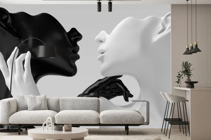 Fototapeta: Miłość dwóch postaci w czerni i bieli abstrakcyjny kontrast