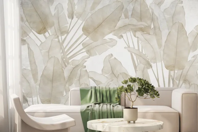Minimalistyczne liście palmy w kolorze beżowym.