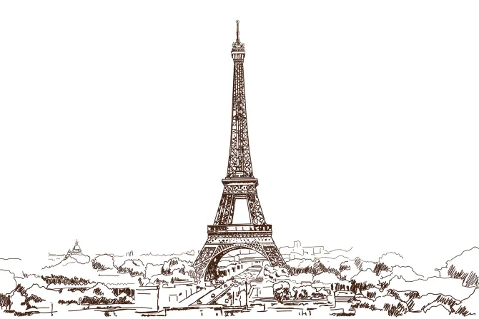 Minimalistyczny szkic Wieży Eiffla w Paryżu.
