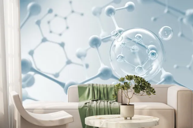 Fototapeta: Molecule inside liquid bubble, cosmetic essence