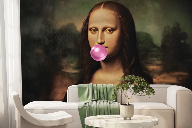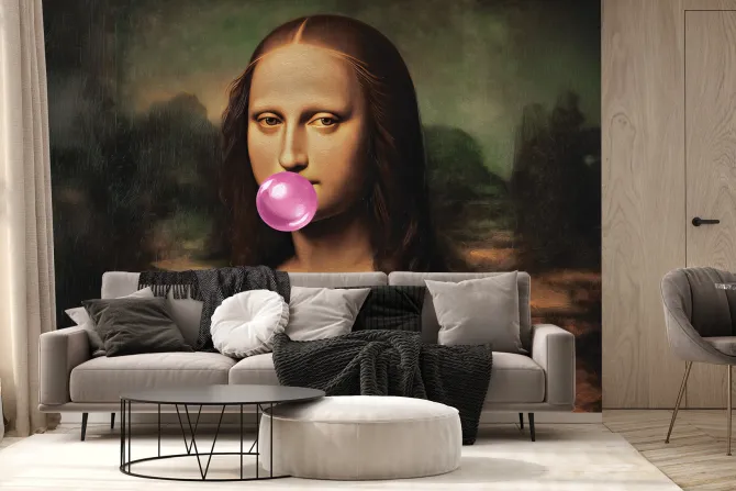 Fototapeta: Mona lisa z gumą do żucia balonową