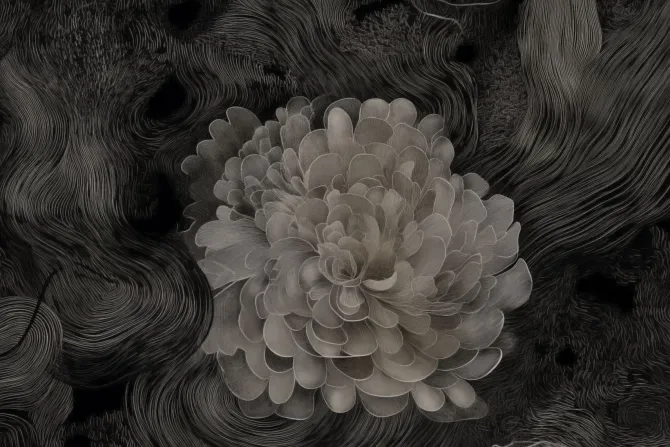 Monochromatyczna kwiatowa abstrakcja w nowoczesnym stylu.
