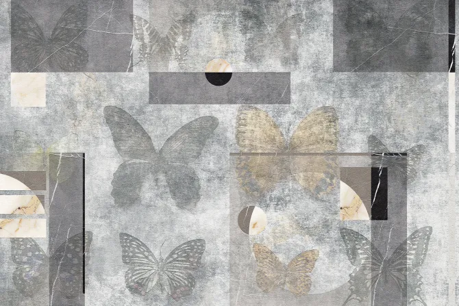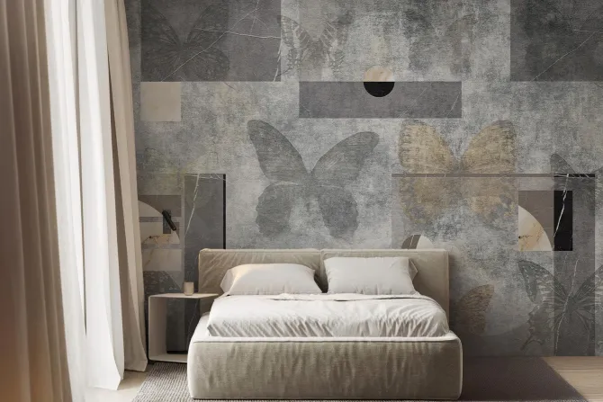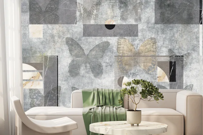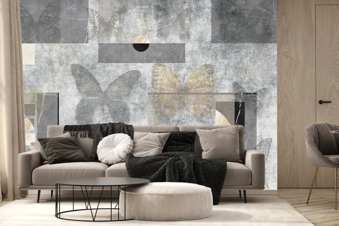 Fototapeta: Motyle i figury geometryczne na betonowym tle abstrakcyjny motyw
