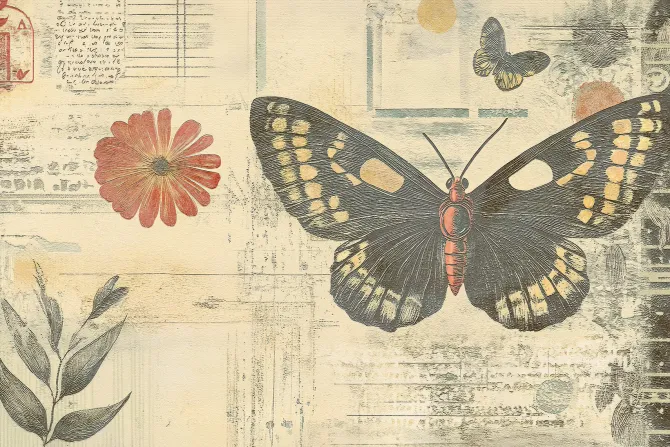 tekstury, retro, liście, kwiaty, motyle