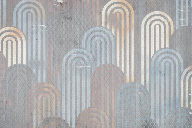 Fototapeta: Niebieskie i złote łuki na szarym tle
