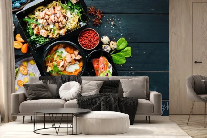 Fototapeta: Nowoczesne dania na drewnianym stole