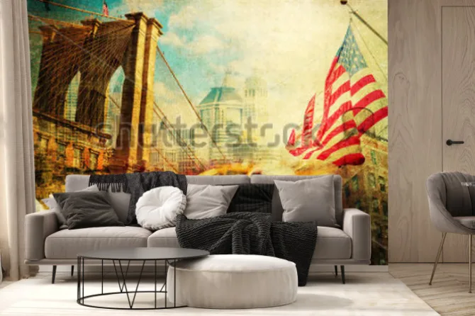 mosty, nyc, taxi, retro, manhattan, tekstury, widok, brooklyn, samochody