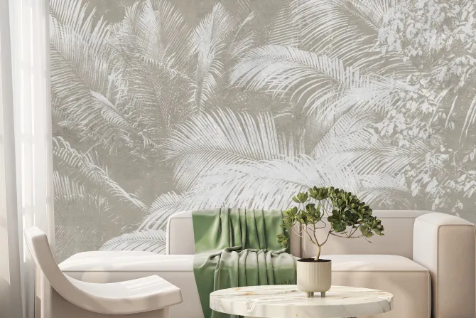 Fototapeta: Odbicie liści palm na beżowym betonie