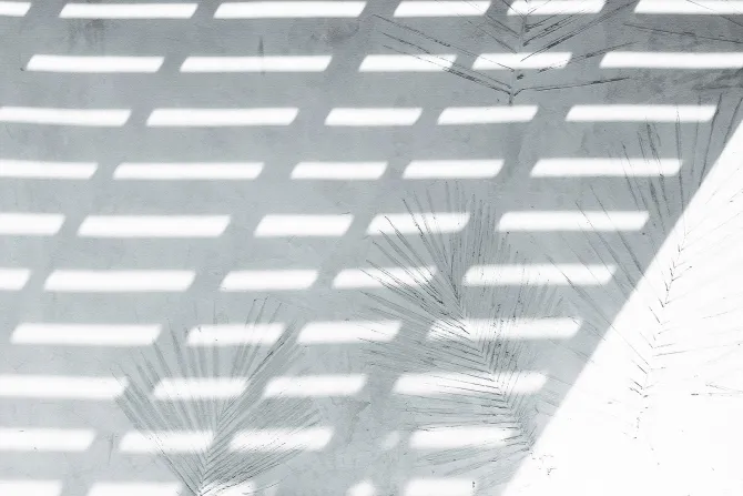 Odbicie palm na białym tle z cieniem.