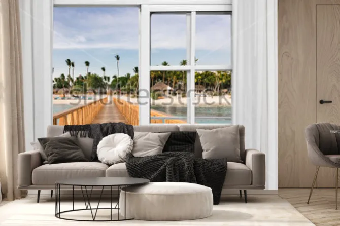 Fototapeta: Okno otwarte widok na altanę w morzu