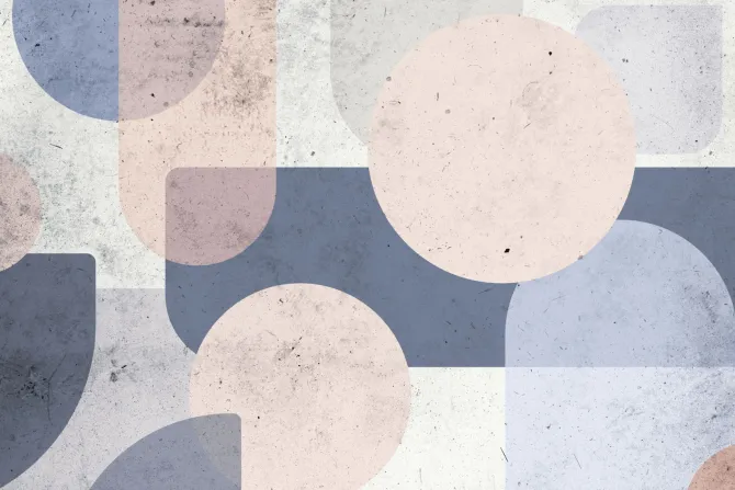 Pastelowe figury geometryczne na tle z efektem betonu.