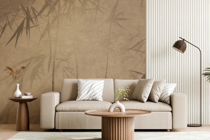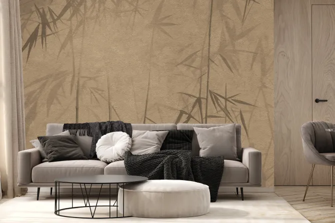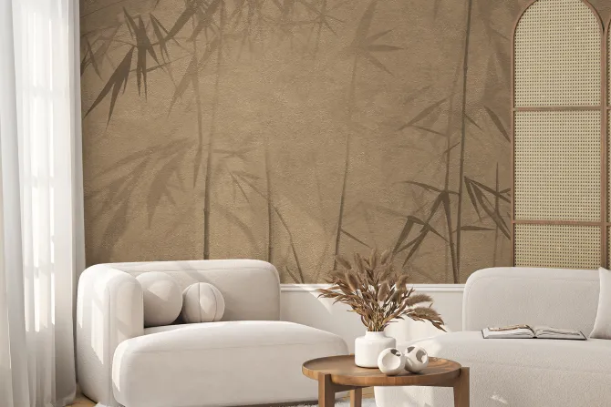 Fototapeta: Pędy bambusu na brązowej ścianie