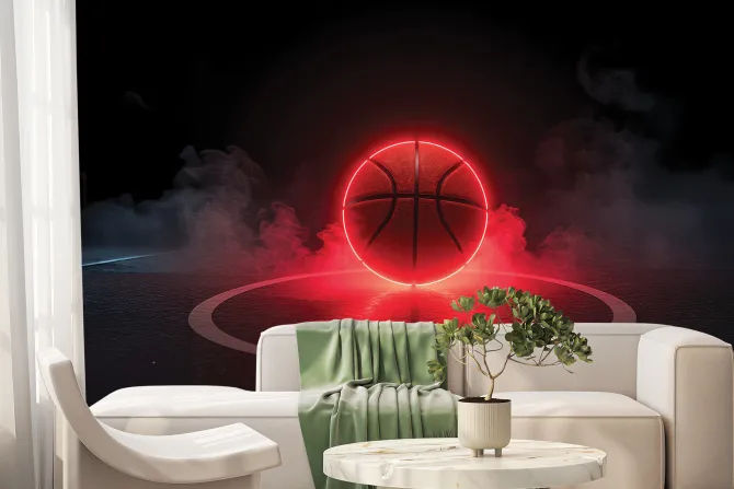 Fototapeta: Piłka do koszykówki z neonem we mgle