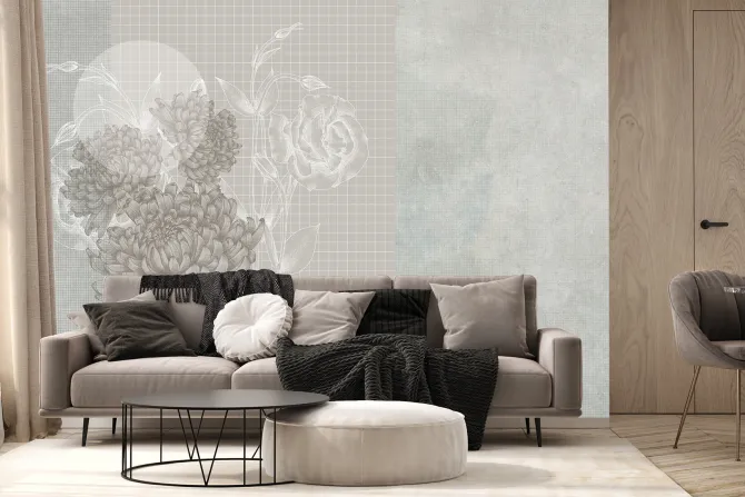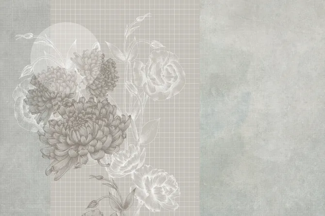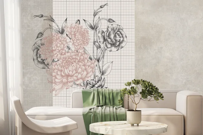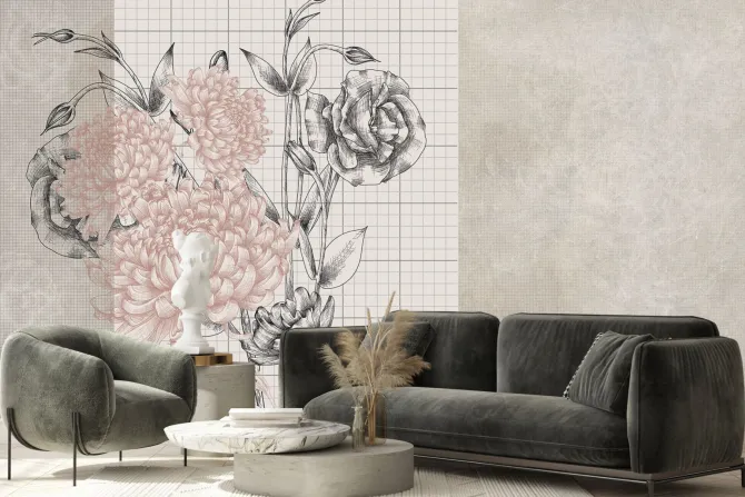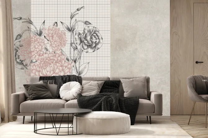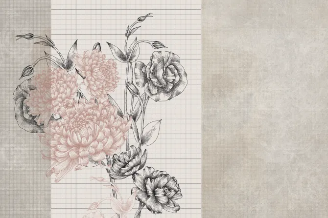 Fototapeta: Piwonie i róże na tle kratki