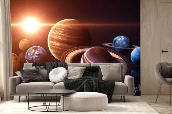 Fototapeta: Planety układu słonecznego i słońce w tle