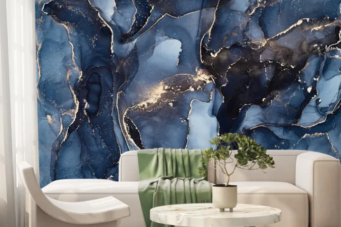 Płynne malarstwo imitacja niebieskiego marmuru.