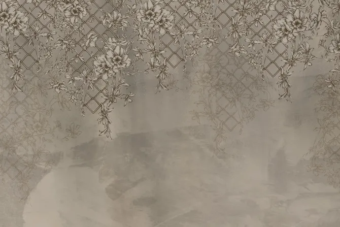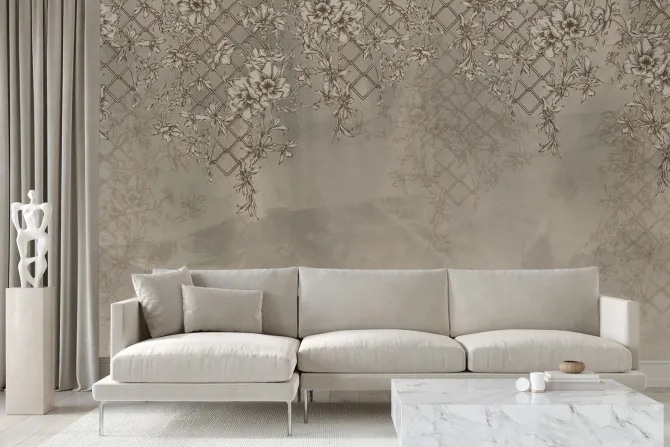 Fototapeta: Pnącza z kwiatami w odcieniach beżu