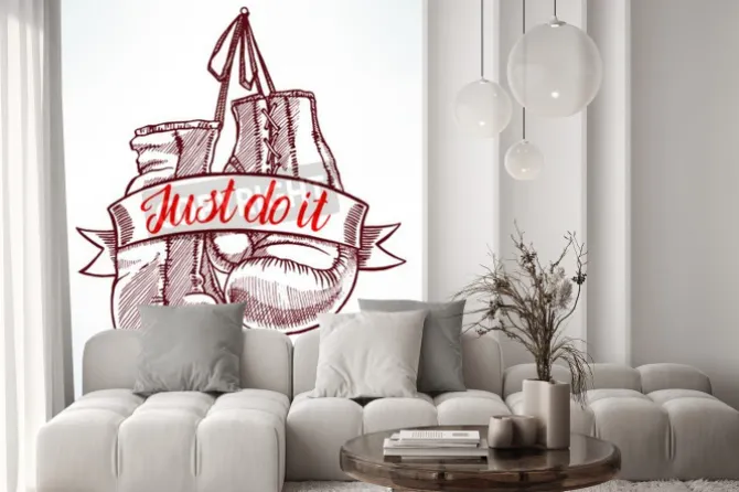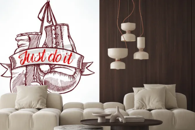Fototapeta: Po prostu to zrób. czerwone rękawice bokserskie. ręcznie rysowane
