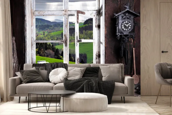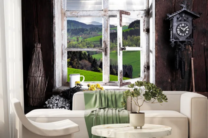 Fototapeta: Pokój w wiejskim domu z widokiem przez okno