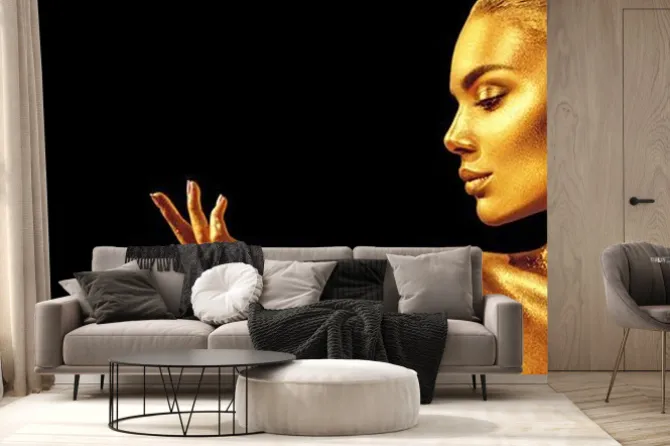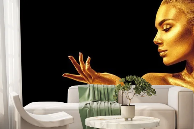 Fototapeta: Portret kobiety w złotawym odcieniu na czarnym tle