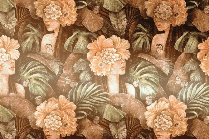 Be the first to review “Fototapeta: Portret kobiety z kwiatami na głowie tropikalny vintage wzór” Anuluj pisanie odpowiedzi