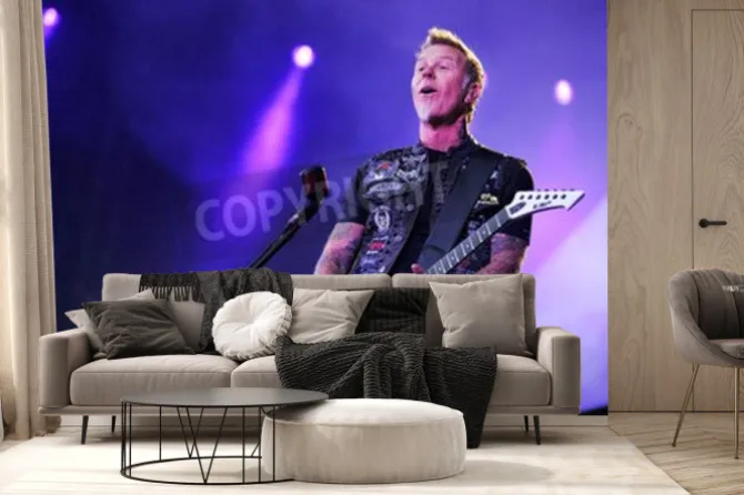 PRAGUE, REPUBLIKA CZESKA – 7 maja 2012: Singer i gitarzysta James Hetfield z Metalliki Podczas występu w Pradze, Czechy, 7 maja 2012..