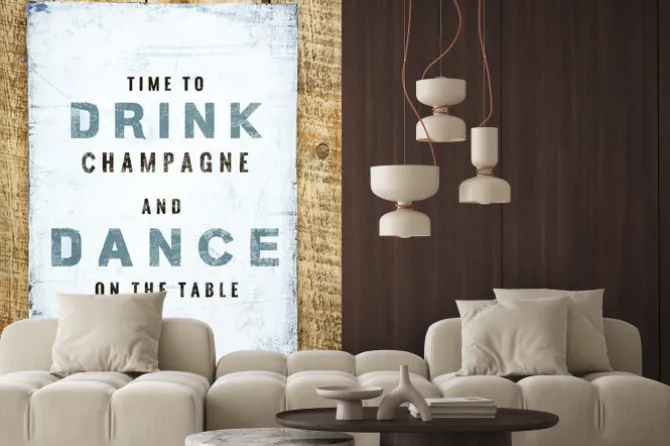 Ręcznie malowane rocznika plakaty motywacyjne. Pić i tańczyć..