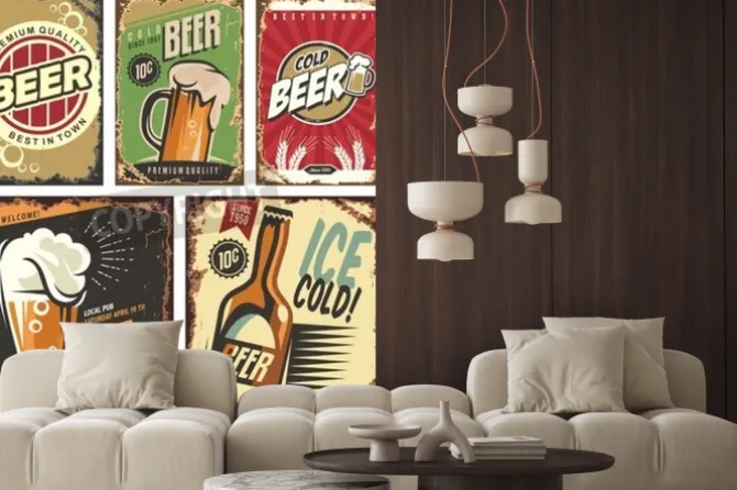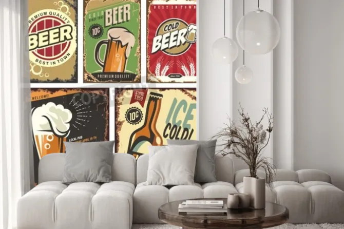 piwo, pub, plakat, bar, restauracja, napoje, retro